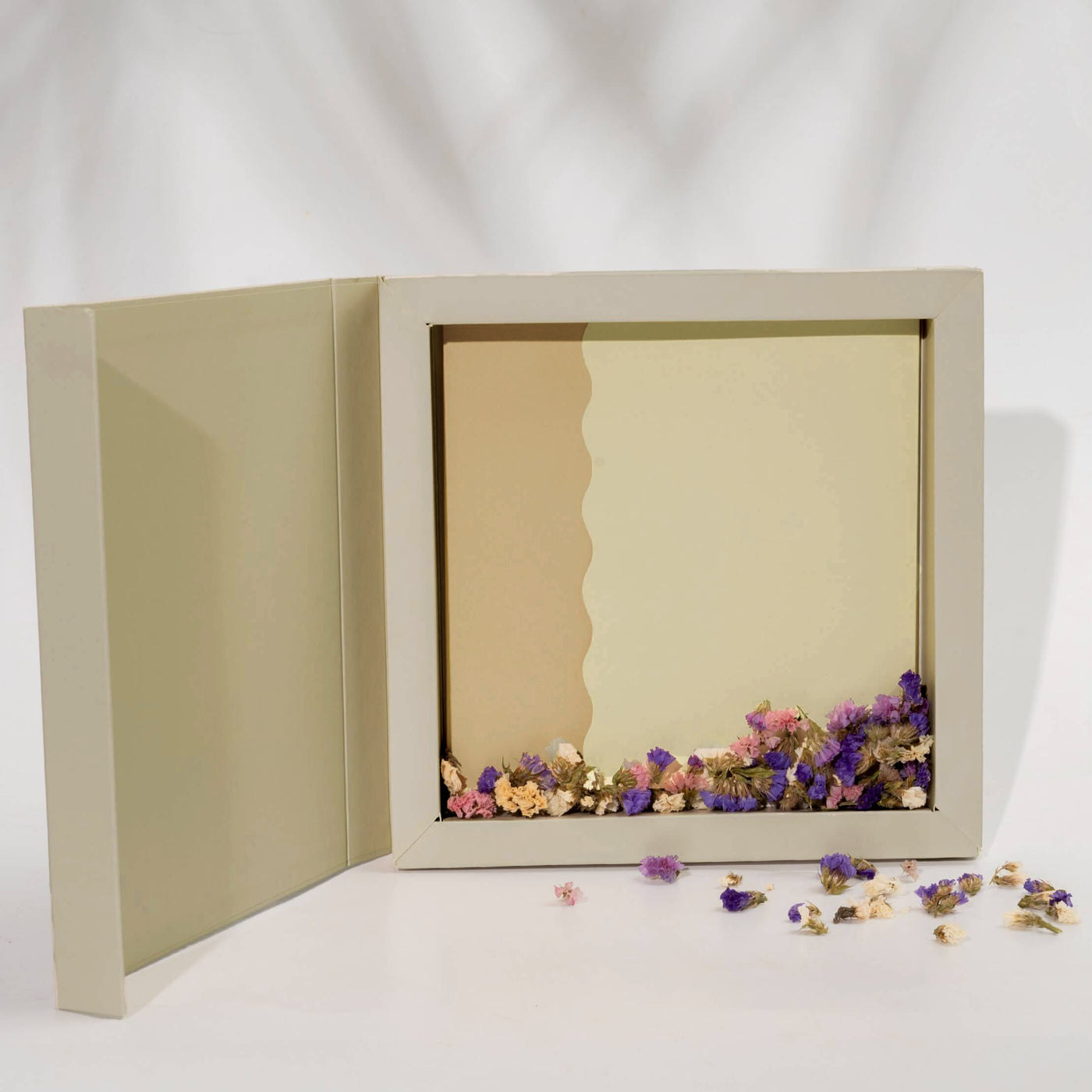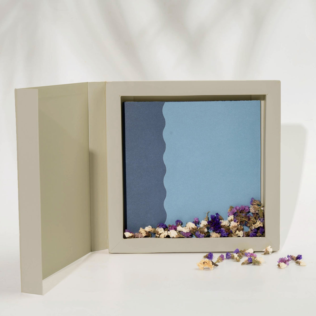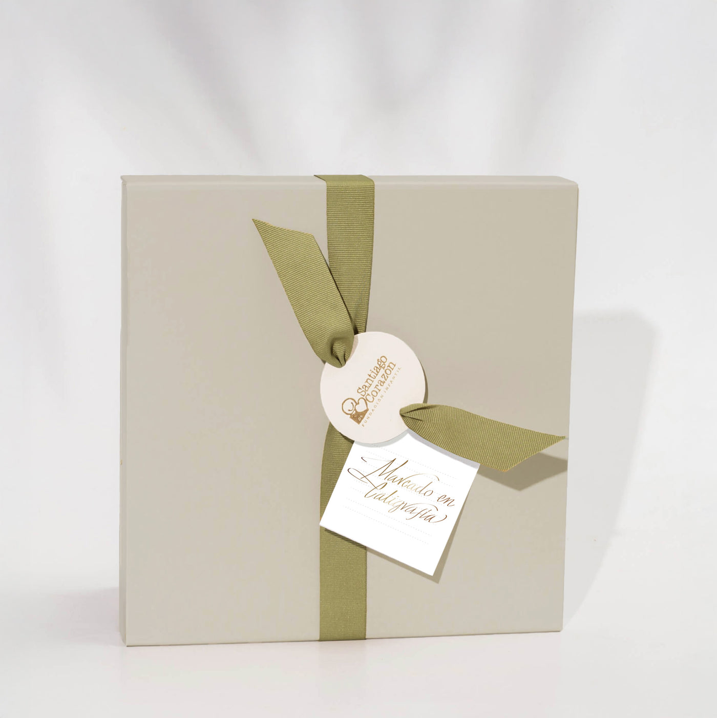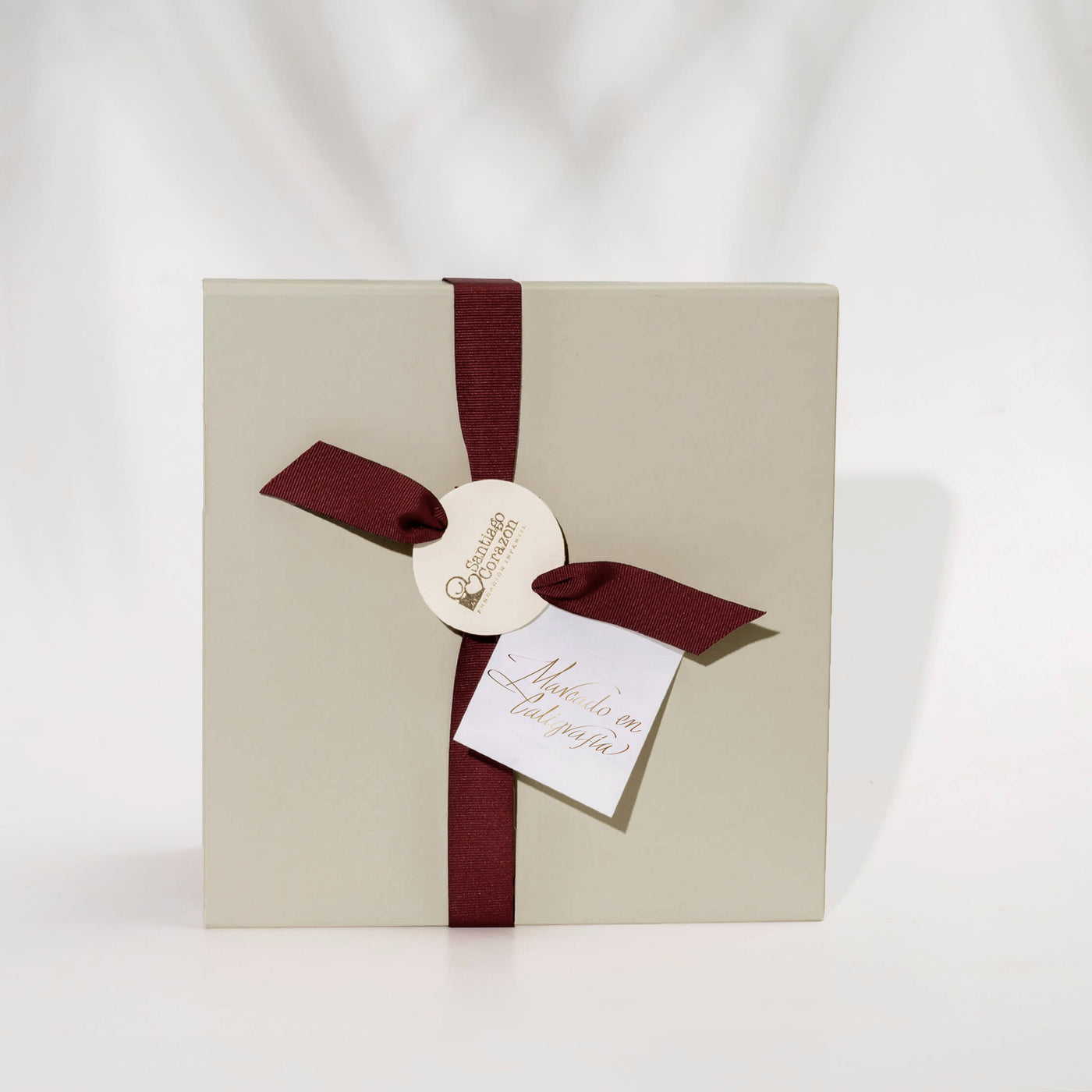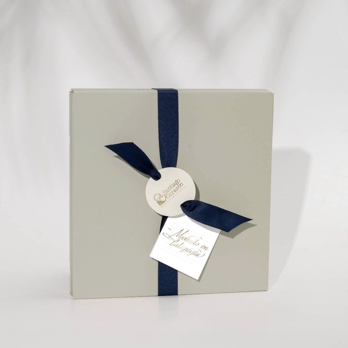 Está elaborado en papel importado: Superfine Eggshell Cover Ultrawhite de 270gm, de 20 x 20 cms., con acabados en estampado al calor dorado y plateado. Tanto la tarjeta como el bono se marcan en caligrafía. Todos nuestros productos son realizados y personalizados 100% a mano.